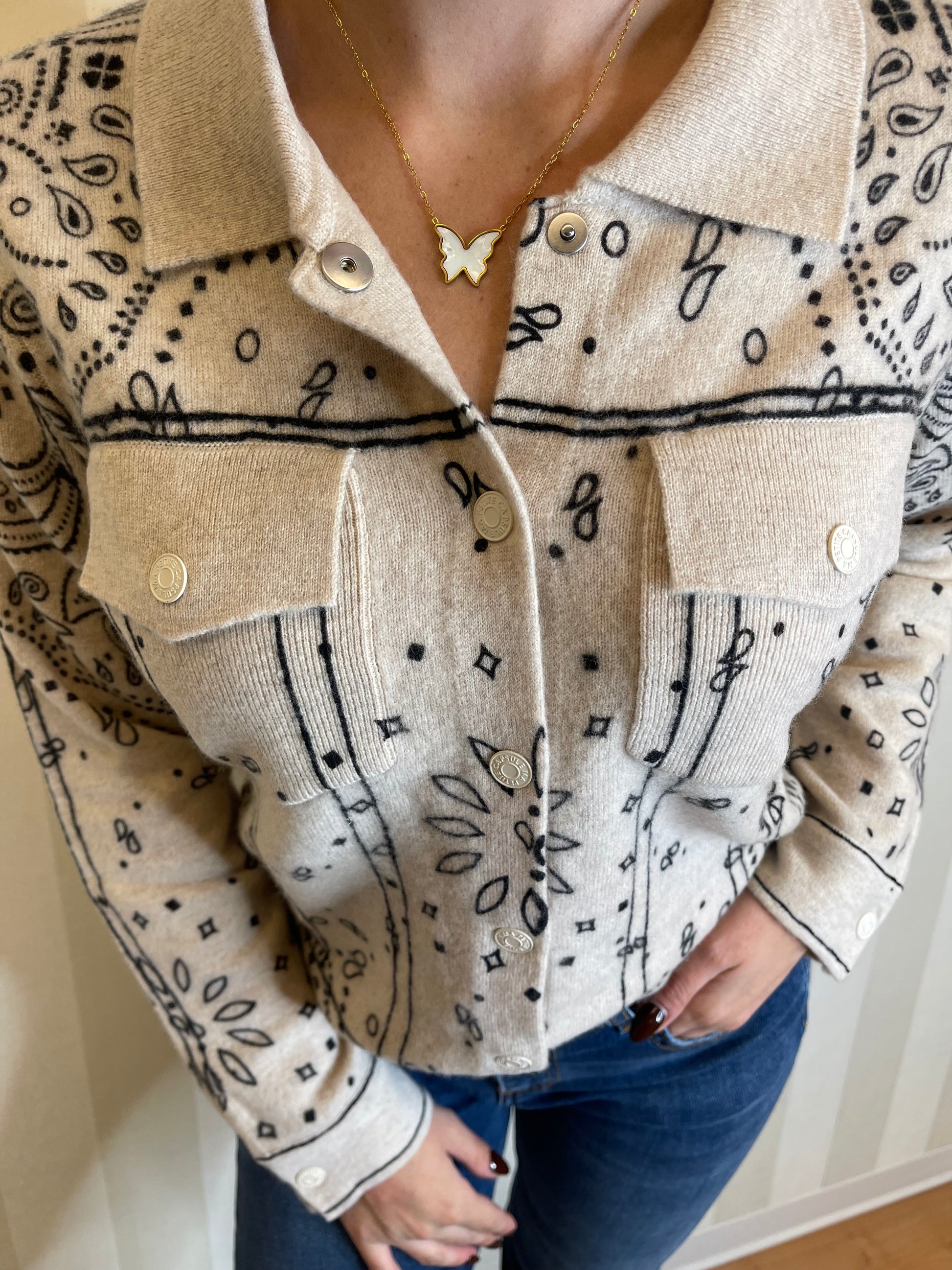 Icona della casa Ma Petite Capsule, la giacca Choupette si reinventa questa stagione in una versione audace con motivo bandana.