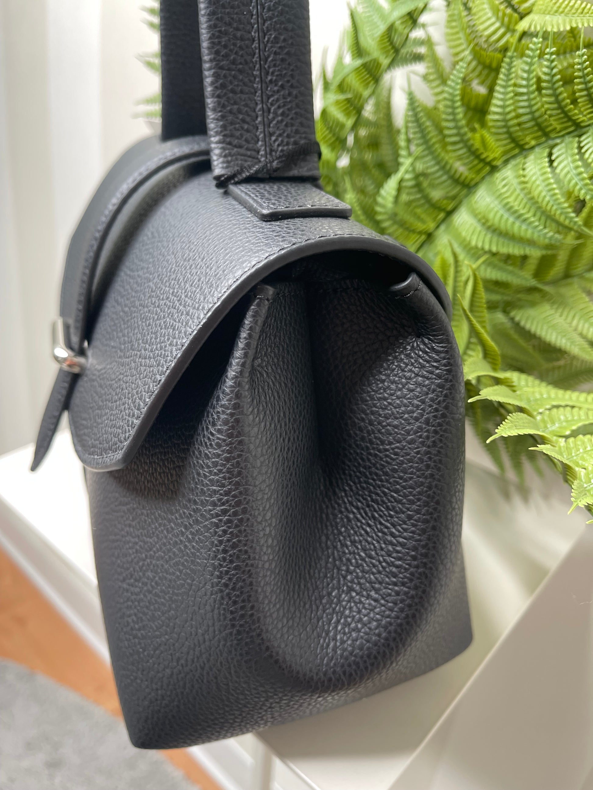 Borsa nera in pelle morbida.