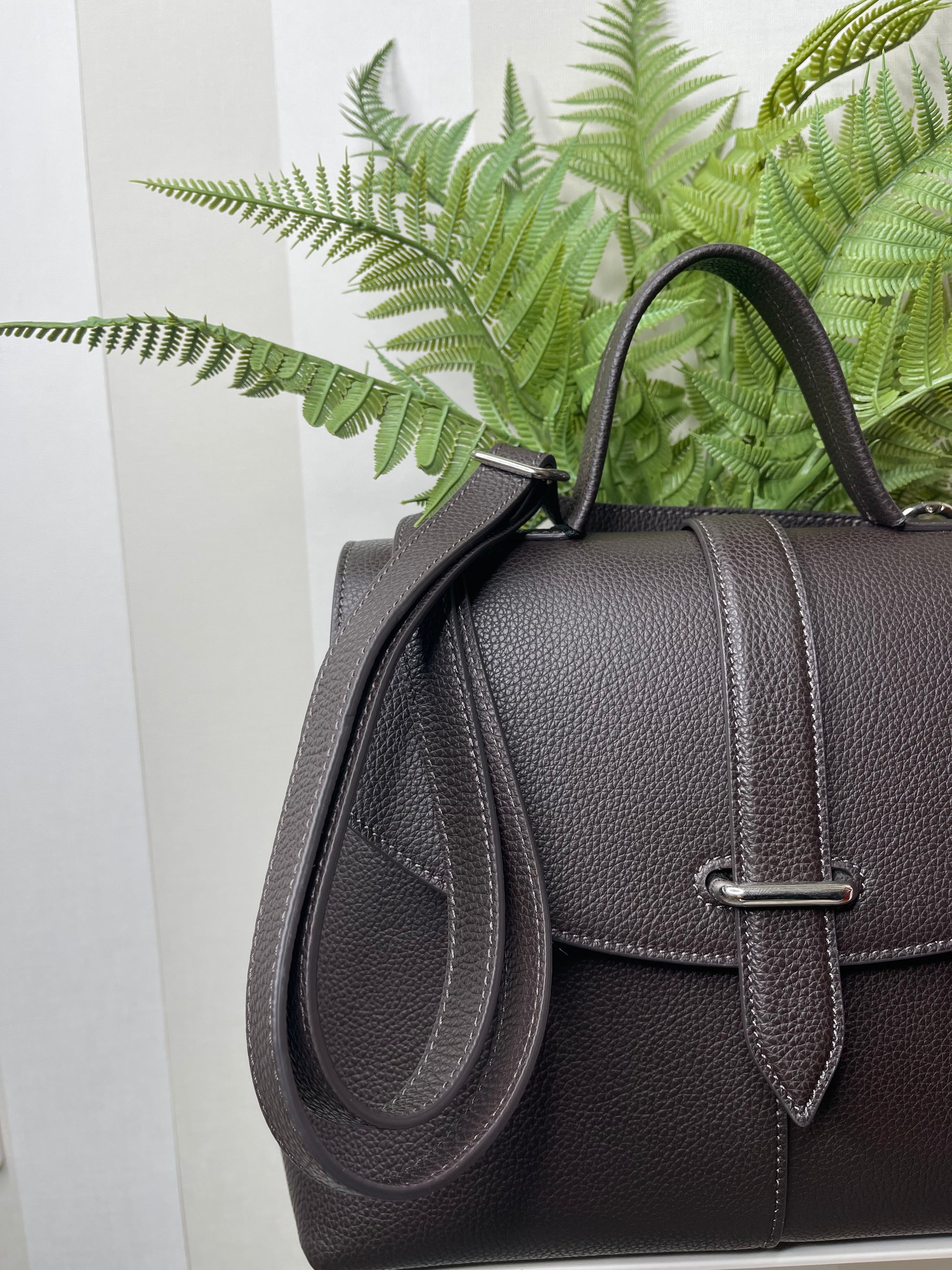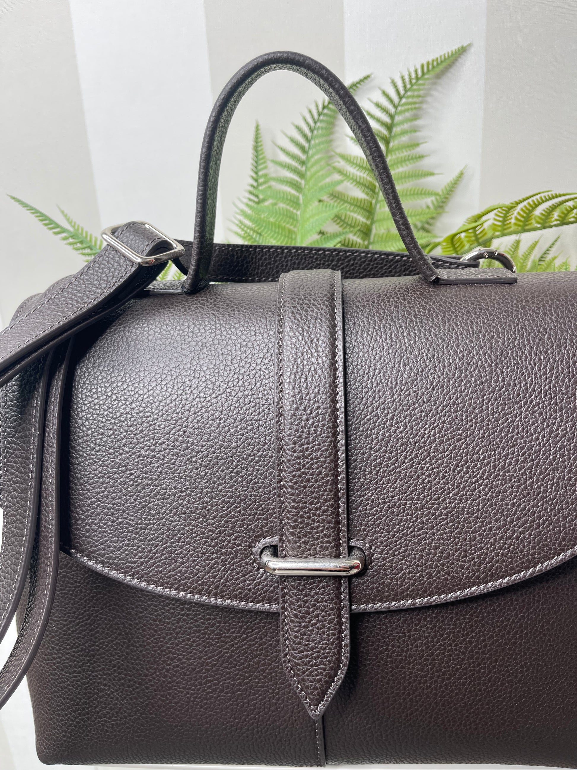 Dal design essenziale ma sofisticato, questa borsa è l’accessorio ideale per accompagnare i tuoi look in ogni occasione. Il colore marrone cioccolato, elegante e intramontabile, la rende perfetta per la stagione. Portala a mano o a braccio grazie al manico, oppure indossala con la tracolla regolabile e rimovibile, logo con la “Q” tono su tono sul fianco e logo interno Made in Italy. Realizzata in morbida pelle di alta qualità.Chiusura pratica ed elegante, che unisce comodità e raffinatezza.