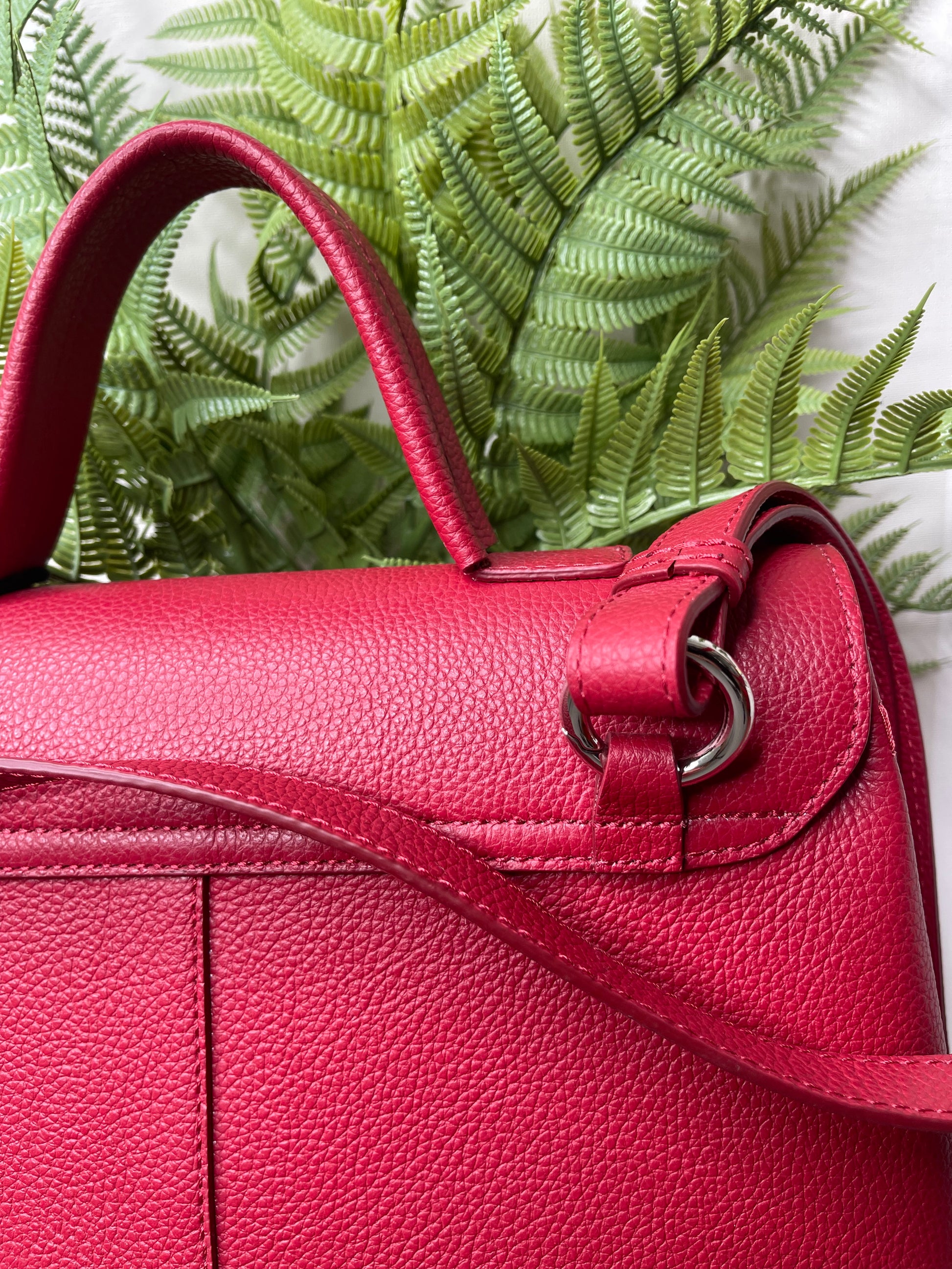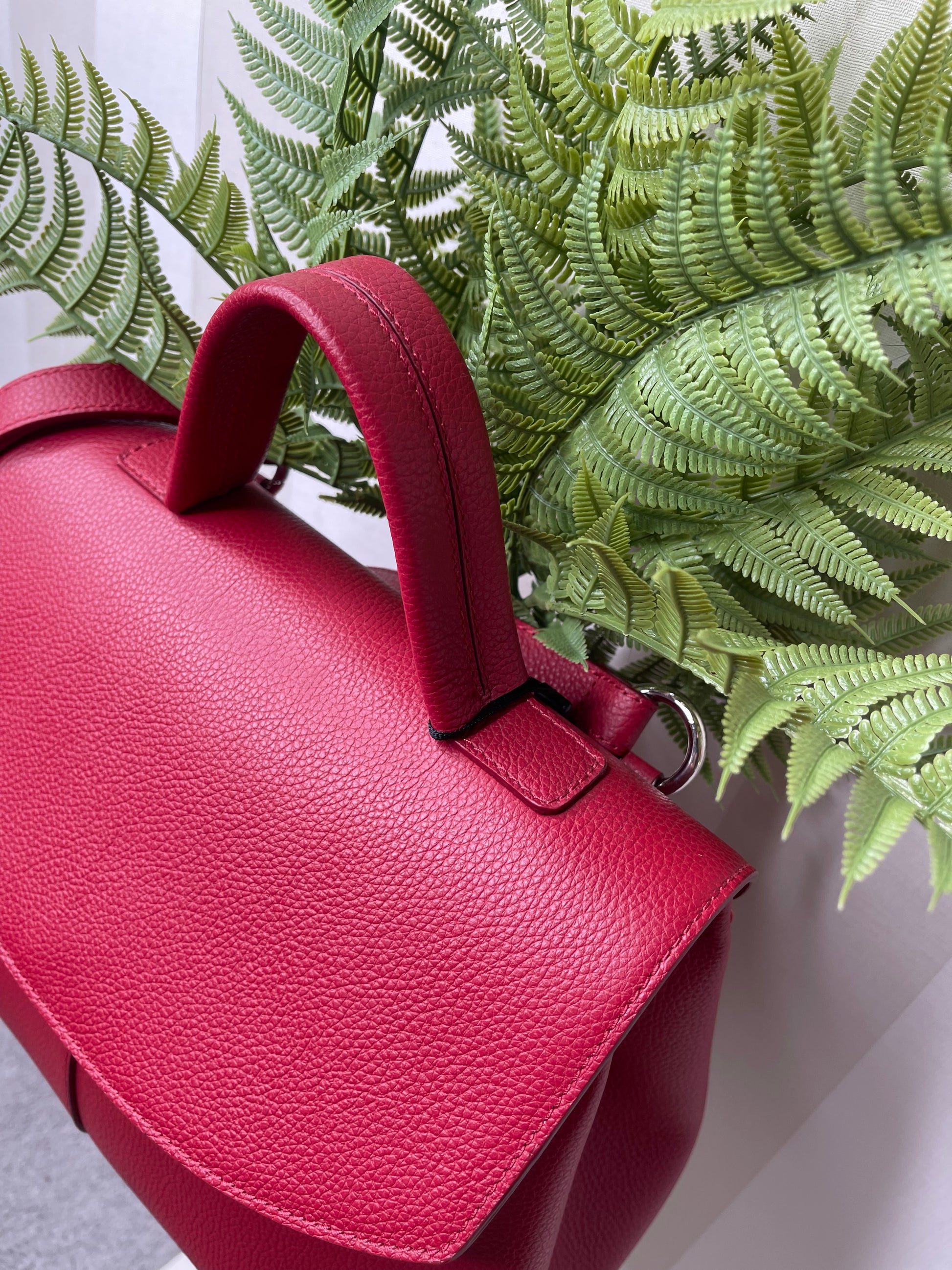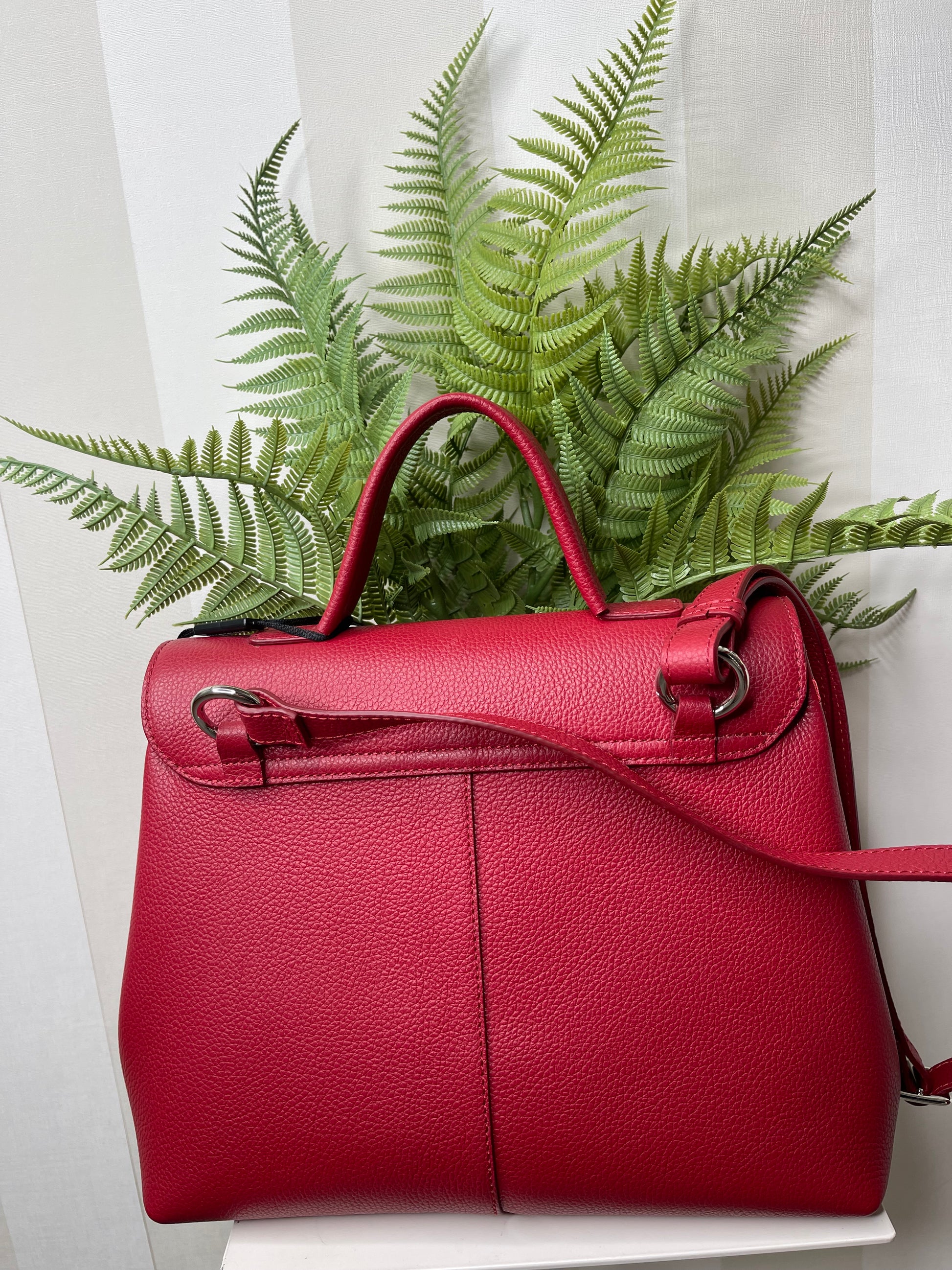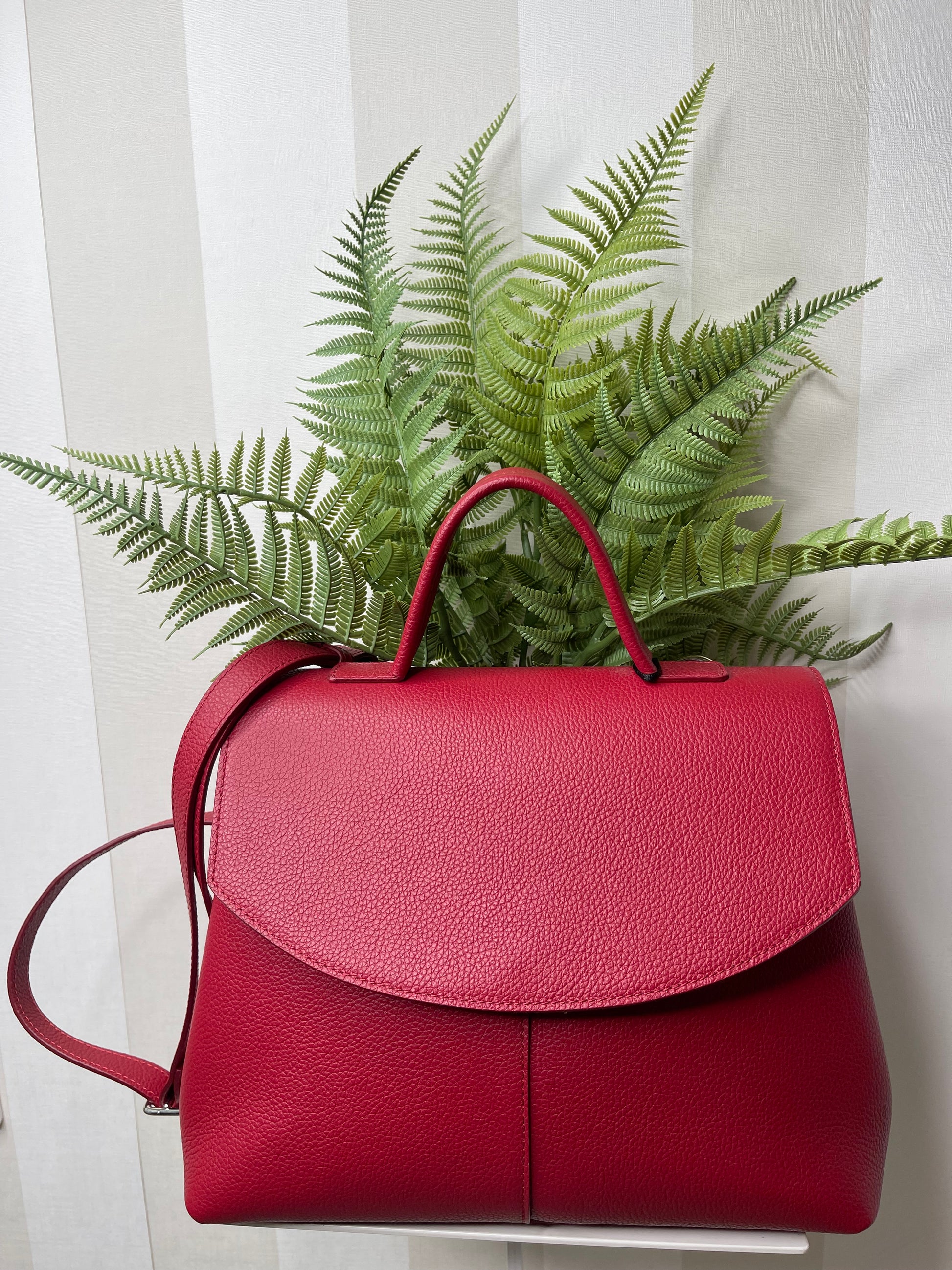 Borsa in pelle dal colore burgundy, tonalità di tendenza per la nuova stagione. Un modello elegante e funzionale, caratterizzato da un manico unico che permette di indossarla comodamente a mano o al braccio. Tracolla rimovibile e regolabile al suo interno.
