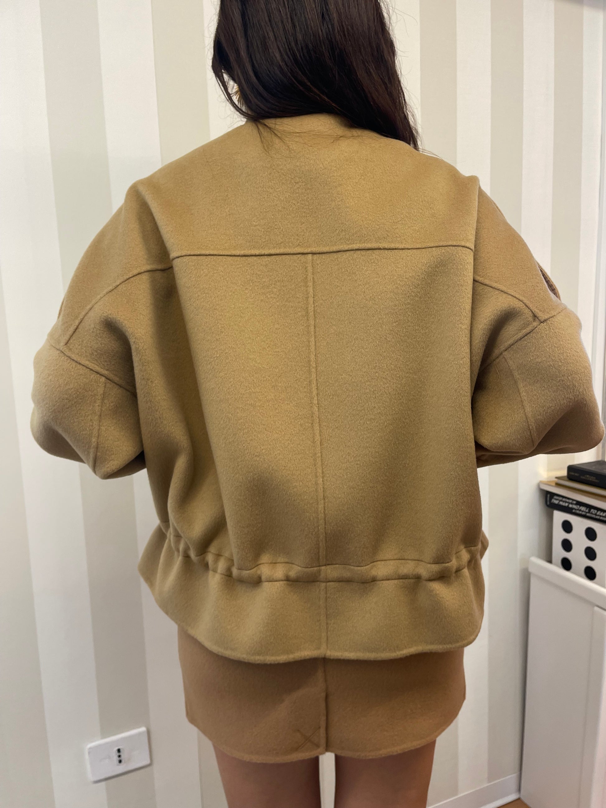 Caban realizzato in panno misto lana e caratterizzato da collo alto con cinturino, da alamari lunghi sulle spalle e da ampie tasche applicate frontali stile utility con patta e bottone a pressione. In vita è presente una comoda coulisse d'ispirazione trekking per regolare l'indosso. Chiusura nascosta con bottoni a pressione. Modello foderato. Il caban corto è un capospalla che combina funzionalità e stile, per accompagnarti nei tuoi impegni quotidiani anche quando iniziano i primi freddi.