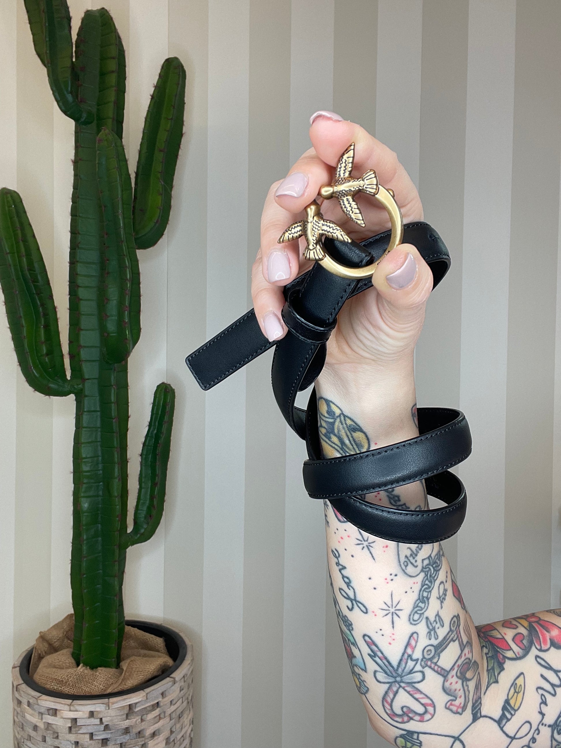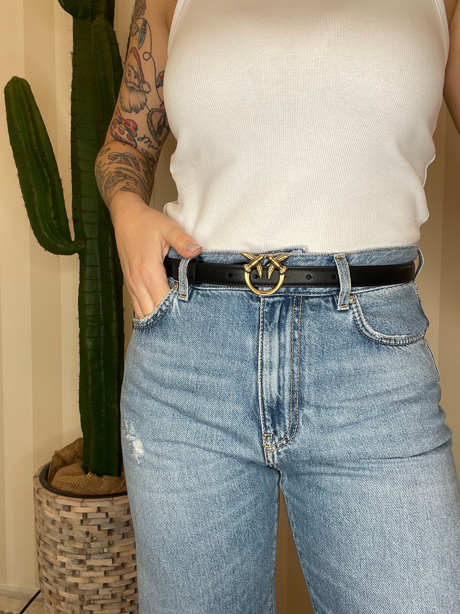 Cintura sottile Love Birds in pelle 2cm