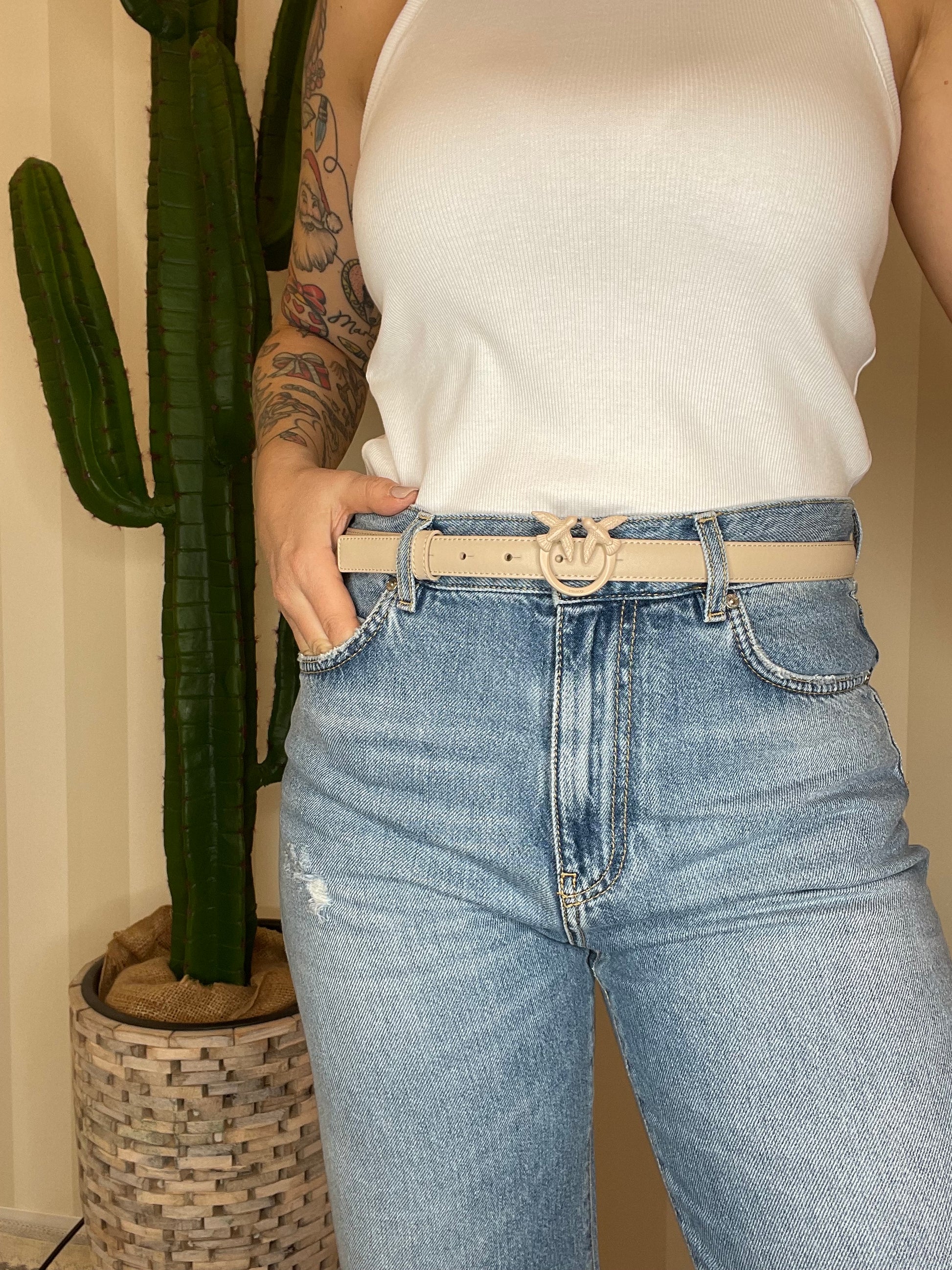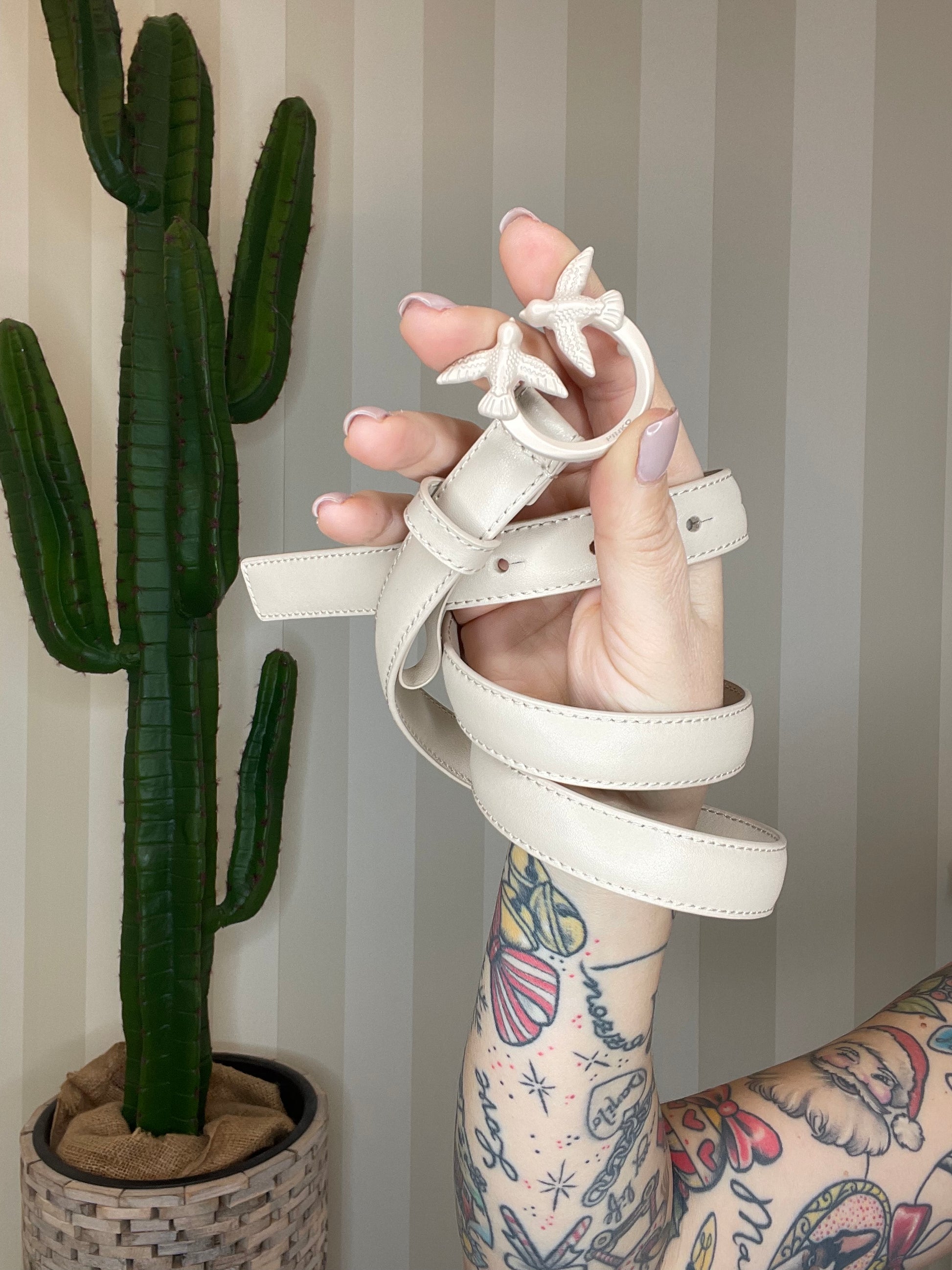 Cintura sottile in morbida pelle mano seta color block con mini fibbia Love Birds Diamond Cut in metallo, galvanica smaltata in tono colore.