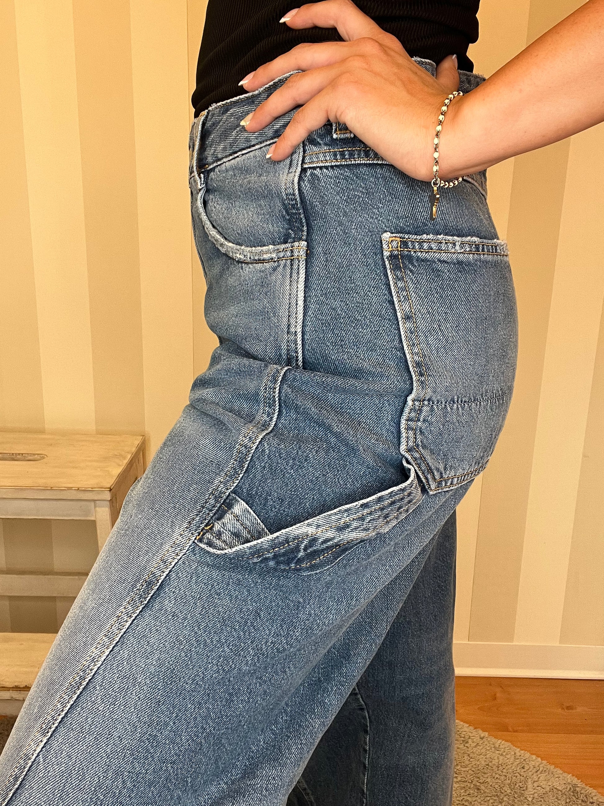 Il jeans baggy carpenter è un must-have per gli amanti della moda. Con un design unico e moderno, questo jeans non è solo versatile ma anche comodo grazie ai suoi volumi. Perfetto da indossare con la tua Sneakers preferita o con un meraviglioso tacco per dare un tocco più elegante e serale.