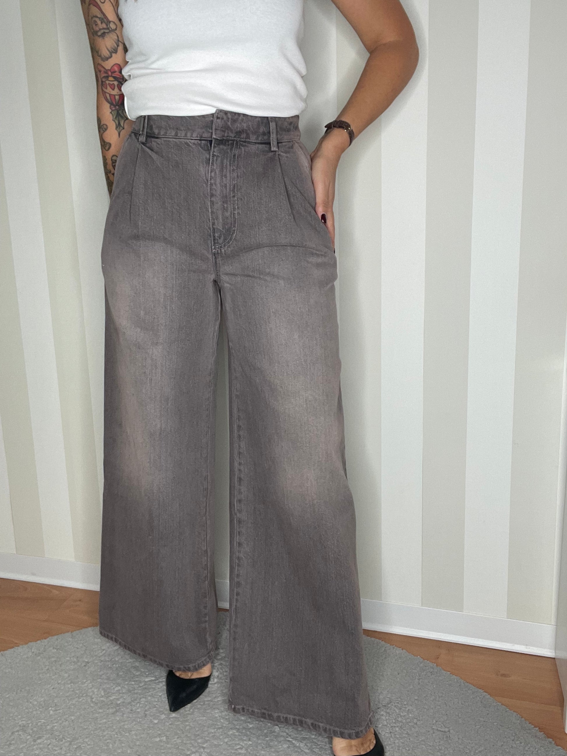 JEANS PALAZZO IN DENIM TINTO CAPO, DALL’ EFFETTO VISSUTO.