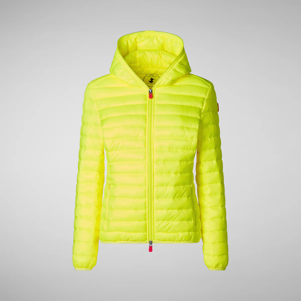Il Piumino 100 grammi con cappuccio in tinta unita Modello FLUO16 Kyla, è stato realizzato in tessuto estremamente leggero e morbido in 100% poliestere.