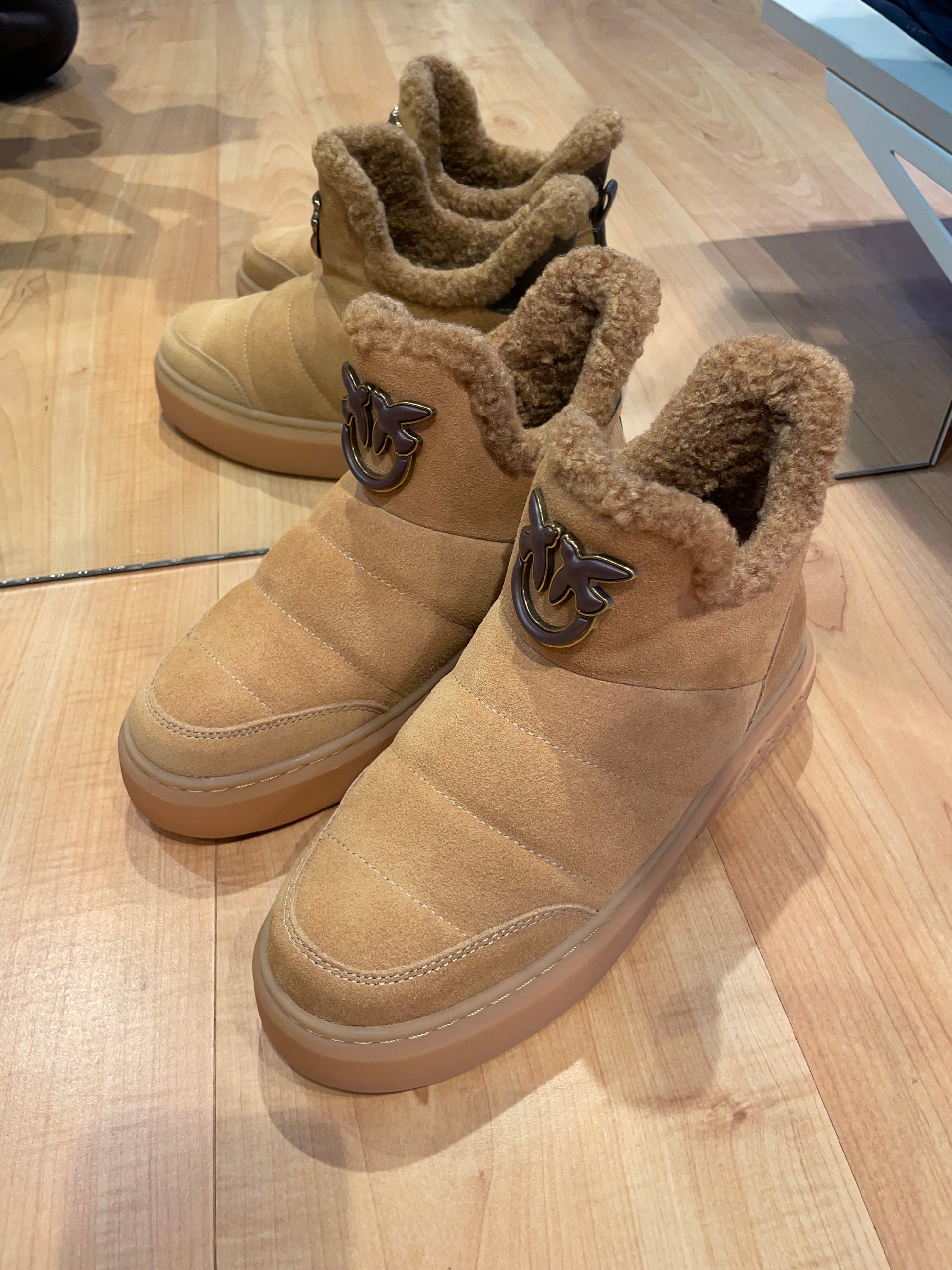 Stivaletti modello yoko bootie realizzati in pelle scamosciata e foderati con morbida pelliccia.
