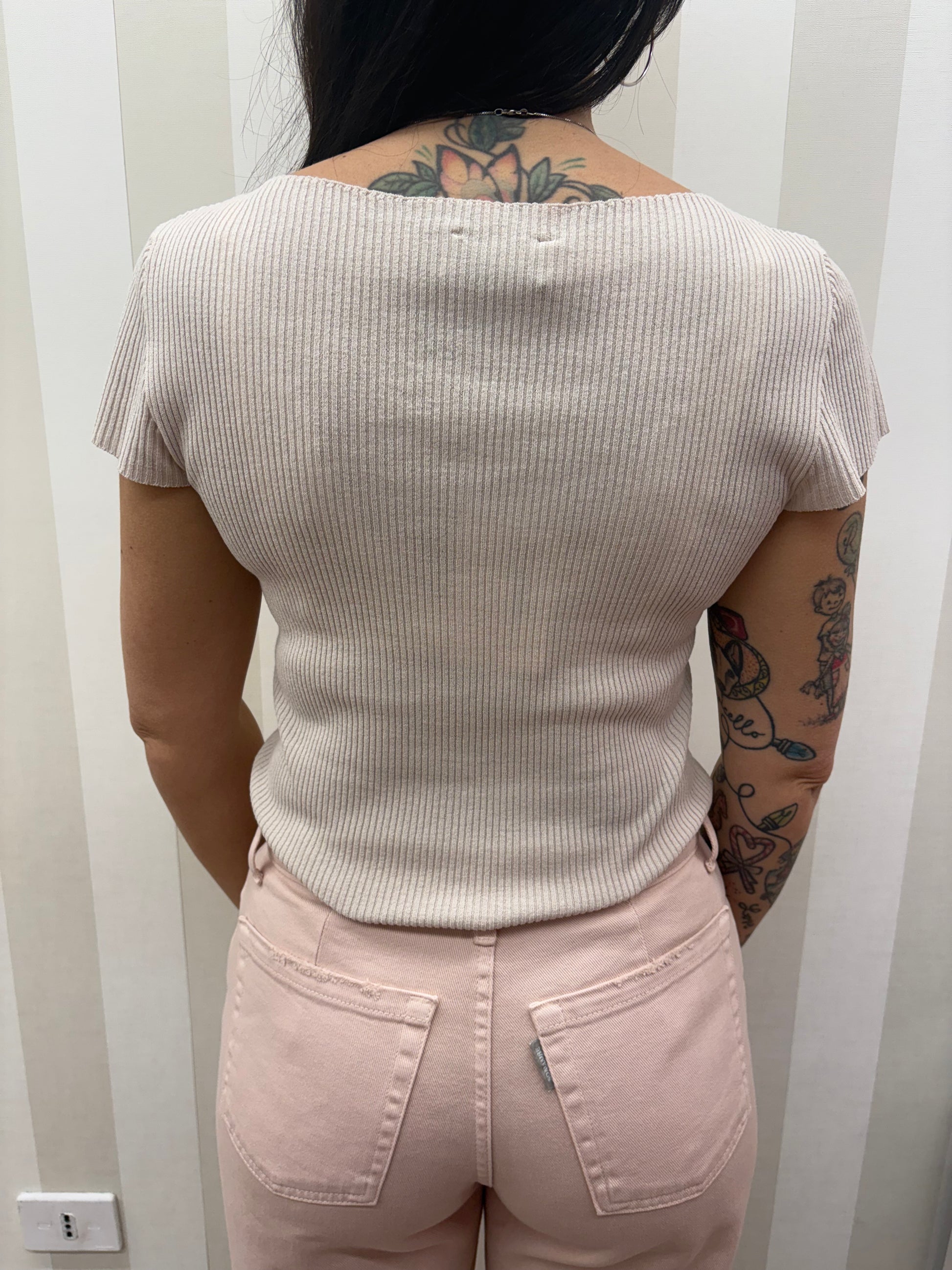 TOP A MANICHE CORTE IN MAGLIA A COSTINE DALLA VESTIBILITÀ SLIM.